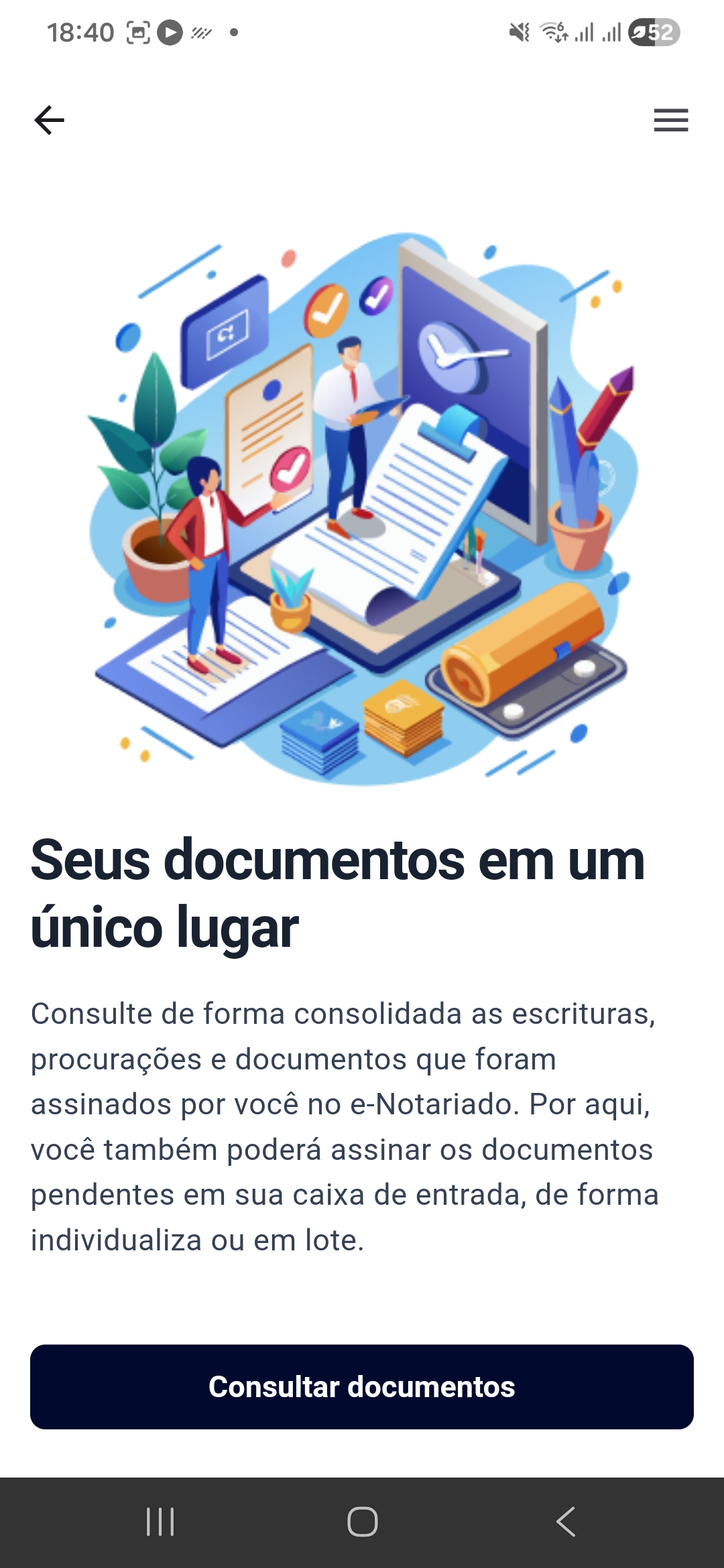 Acesse o app e-Notariado e clique em 'Consultar Documentos' ![]() | Clique em 'Consultar Documentos' ![]() |