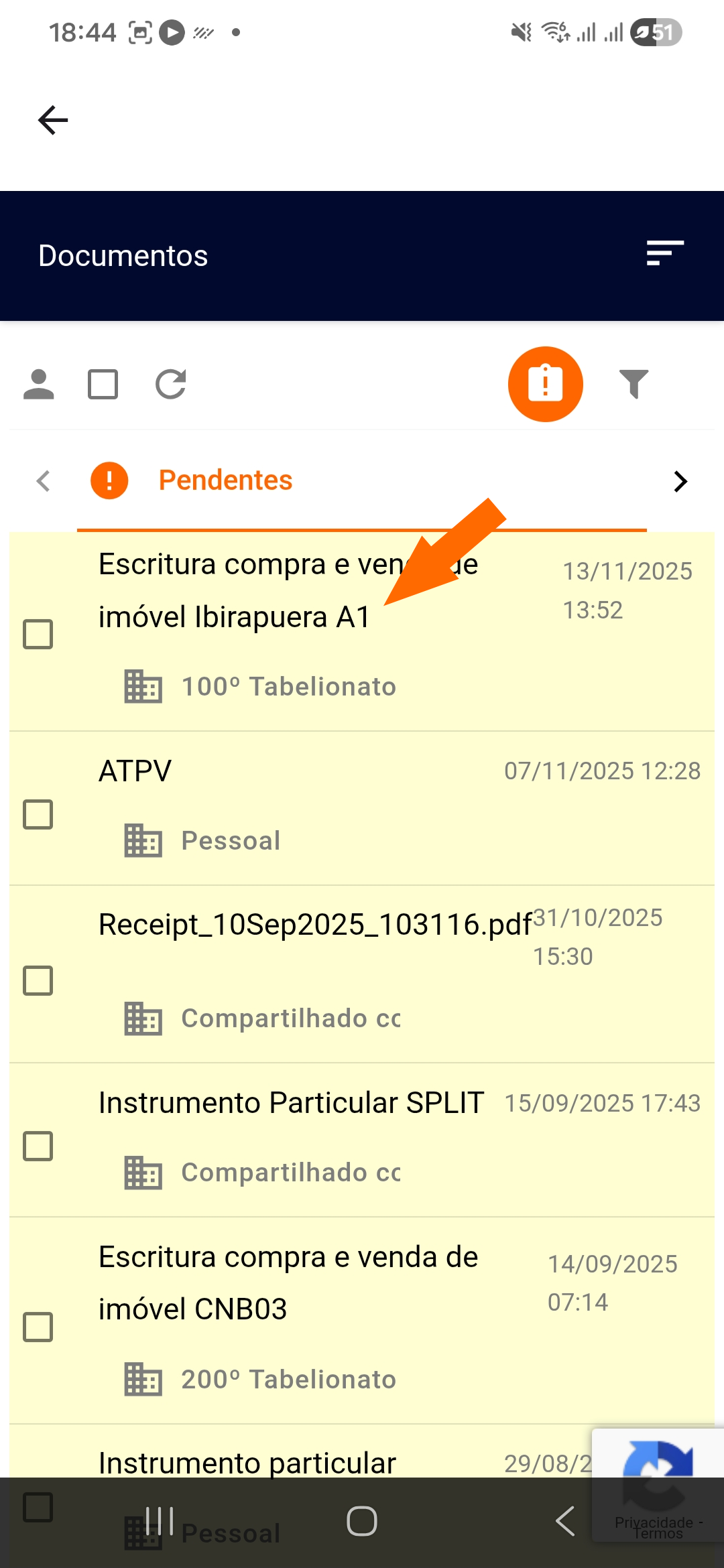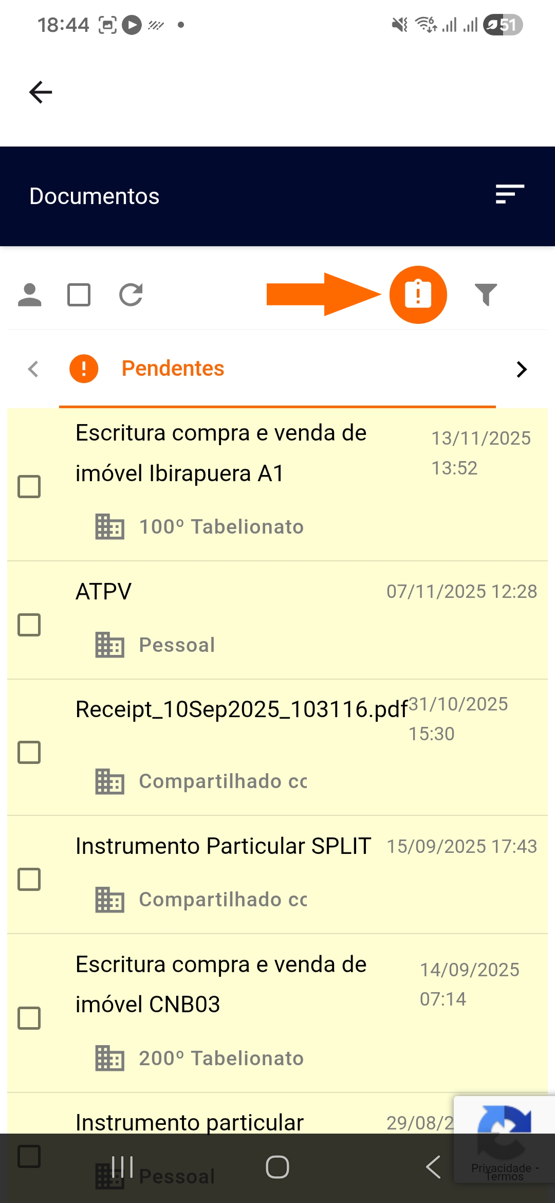Clique no ícone 'pendentes para mim' para filtrar apenas os documentos que aguardam a sua assinatura digital.![]() |