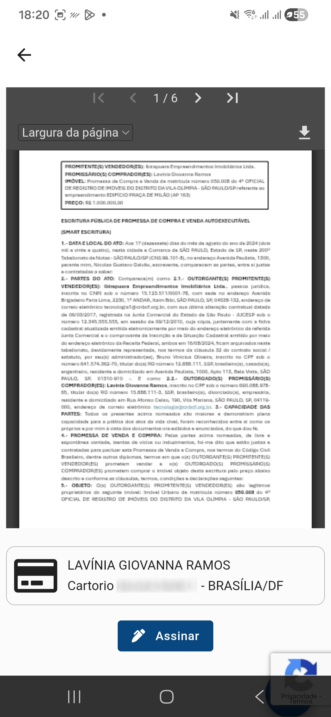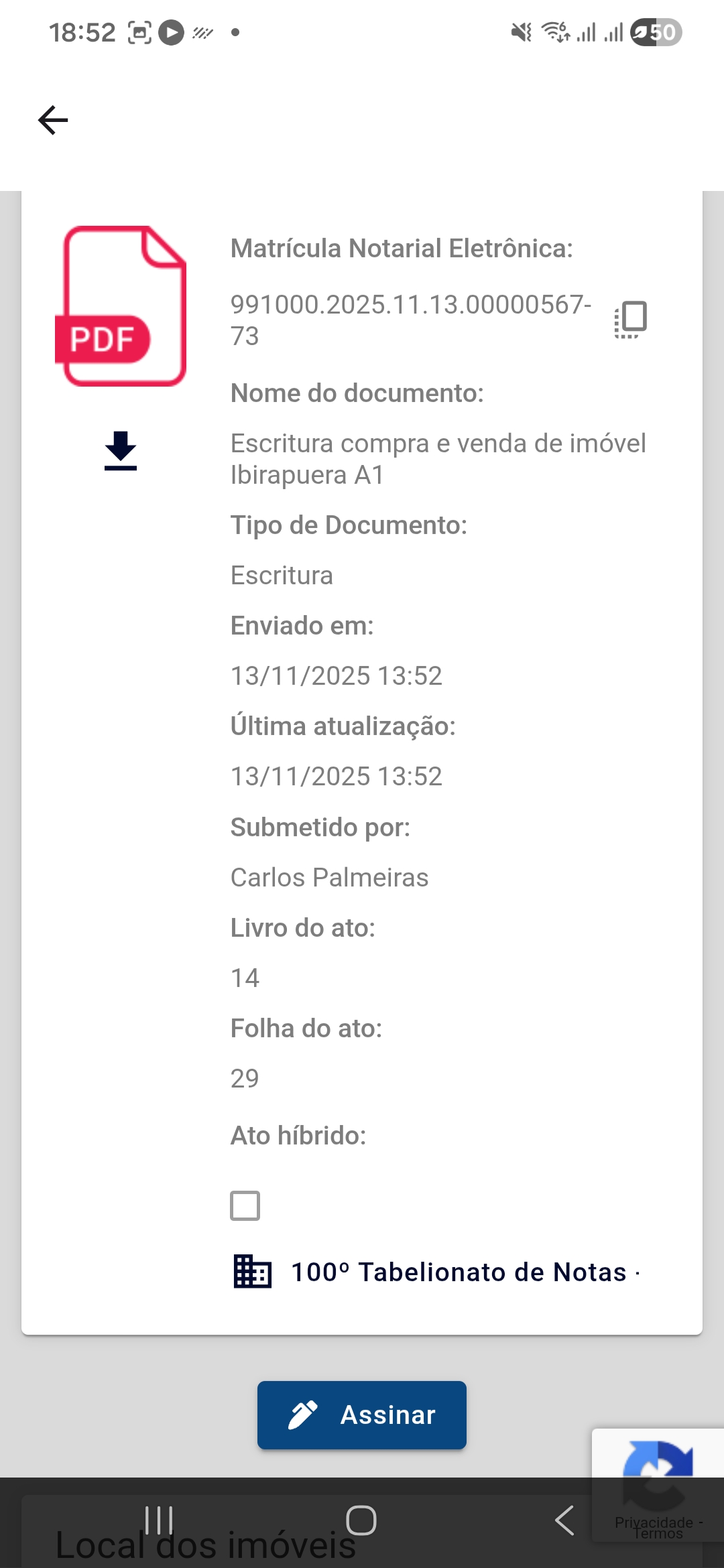 Clique em 'Assinar' e autorize a assinatura digital com o PIN, digital ou FaceId de seu celular.![]() |