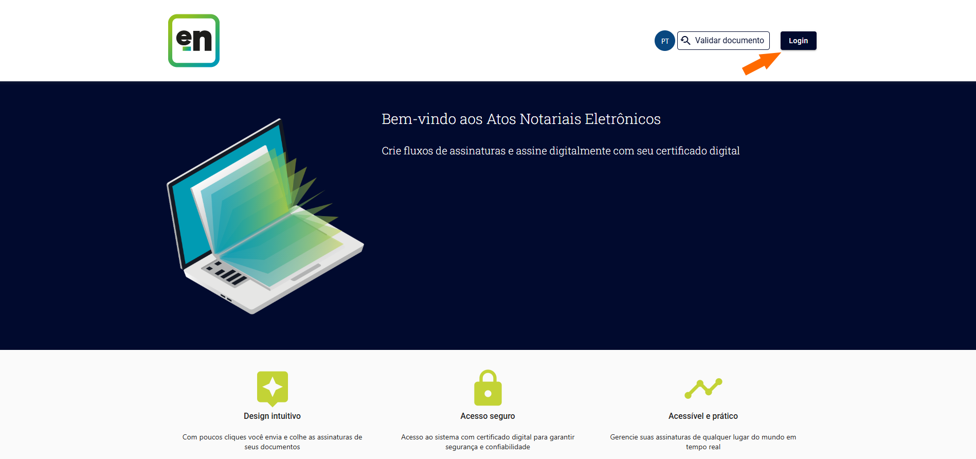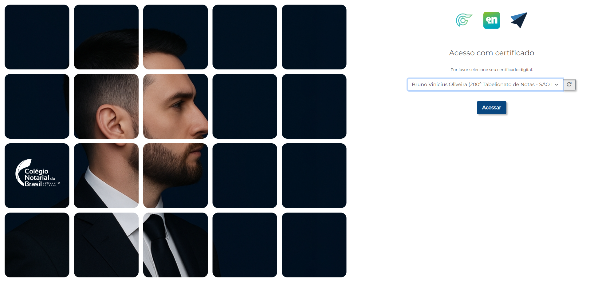 Se for assinar documentos particulares enviados pelo e-Not Assina, será obrigatório acessar com o seu certificado digital notarizado.