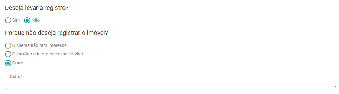 Caso não queira levar nenhum dos imóveis a registro, selecione o motivo correspondente.