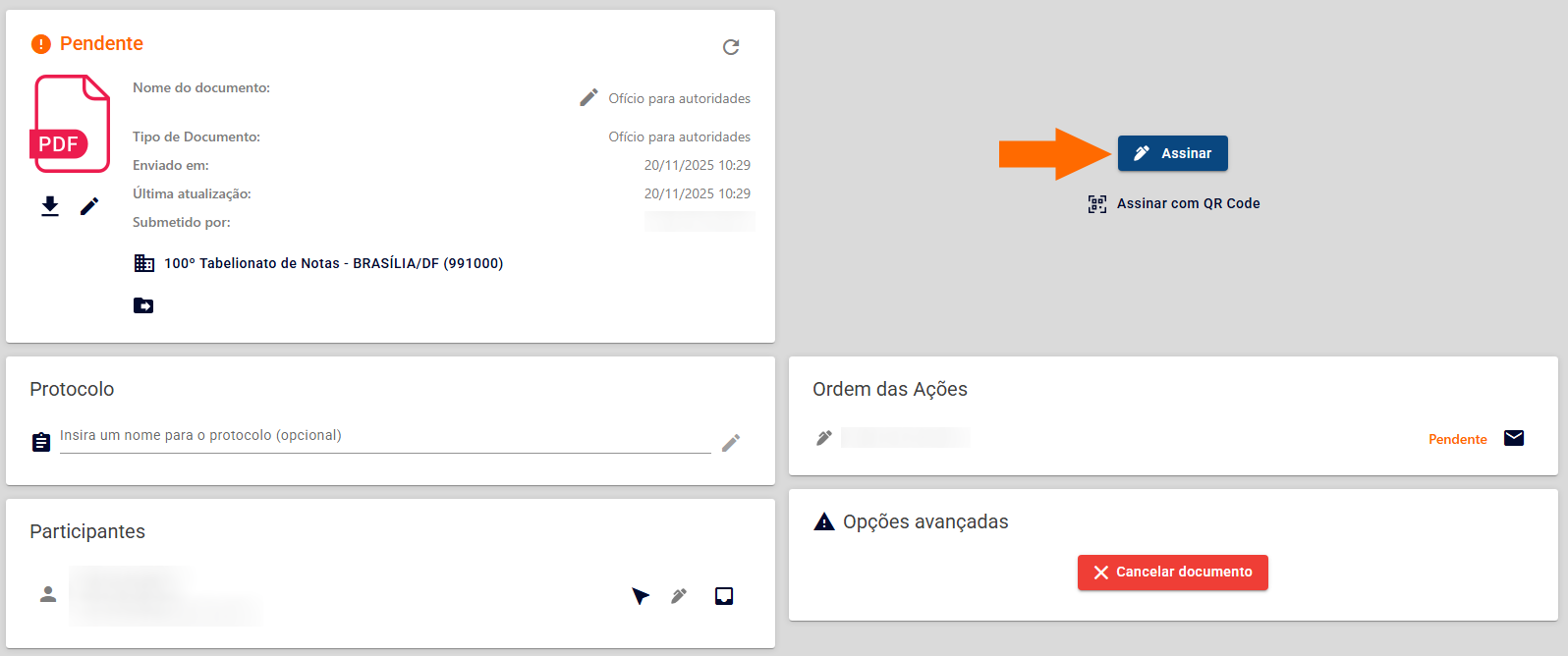 No Fluxo de Assinaturas do e-Notariado é possível assinar digitalmente ofícios a Autoridades, elaborados pelo cartório, para serem encaminhados em seguida por e-mail.