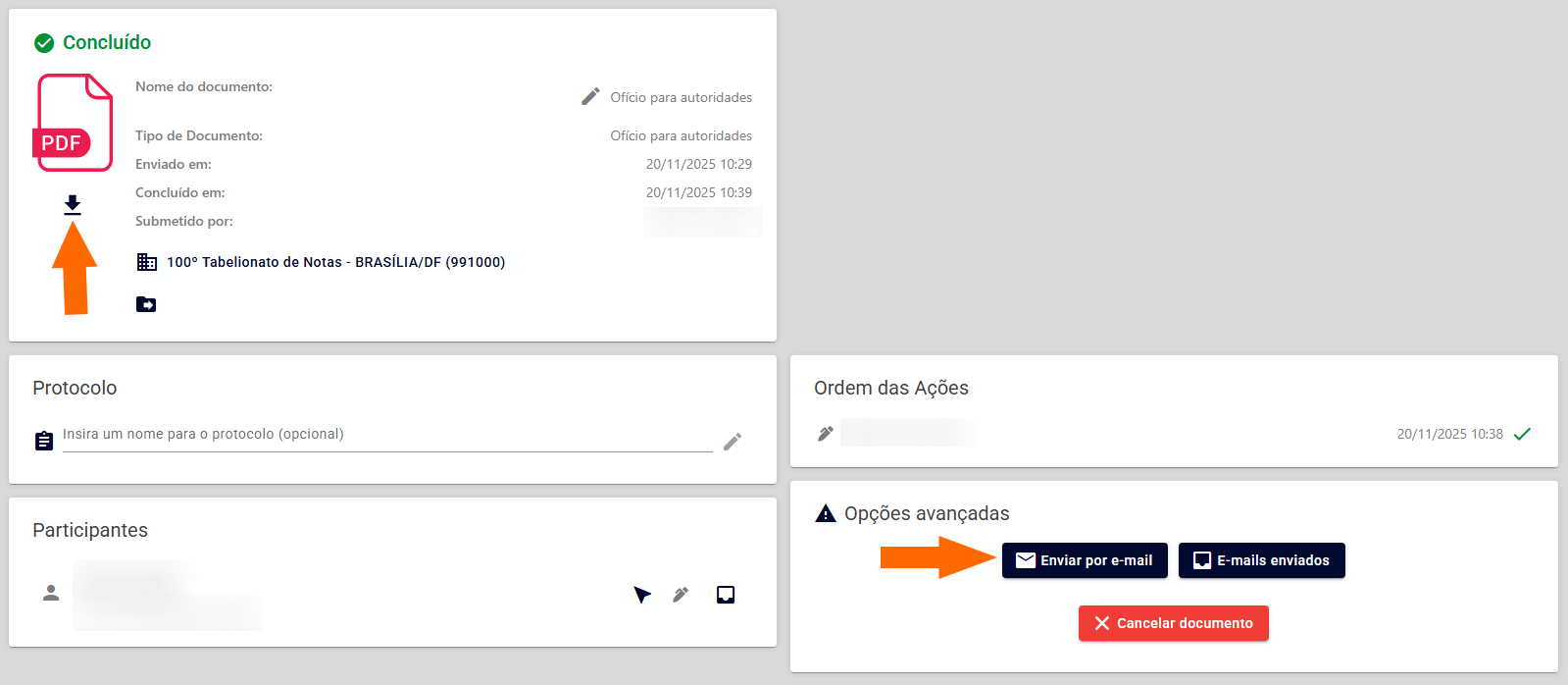 - Baixar e/ou disparar o e-mail do ofício assinado