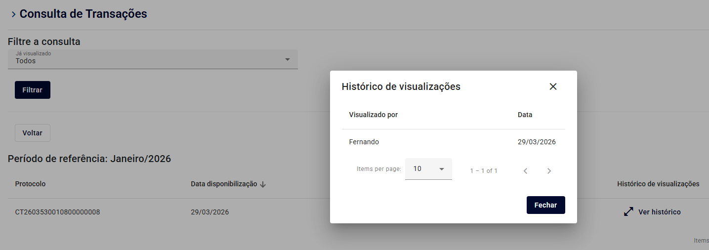 Ao clicar em 'Ver histórico', será apresentado o histórico de quem e quando o protocolo já foi visualizado, se for o caso.