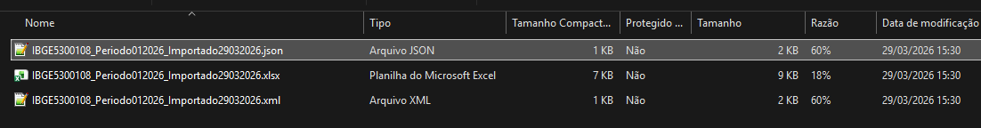 Ao clicar em 'Download', será baixado um arquivo zipado contendo os dados em formato Json, XML e Excel.